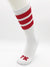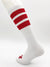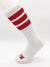 The FK Sport White High Calf Tube Sock currently comes in three different stripe colors. In addition to three super-saturated color stripes, these over-the-calf socks also have a matching FK logo on the toe. Wear them as a flagging accessory or for a retro look.
