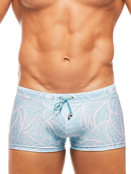 Get wild with these Amazon-inspired trunks! With a leaf and raindrop pattern in greens, blues and blacks, this look will turn heads. Hand cut and expertly sewn, the trunks are fully lined and imprinted with the Tribe logo in white on the left hip. The waist is secured with a cord tie finished with silver toggles.
